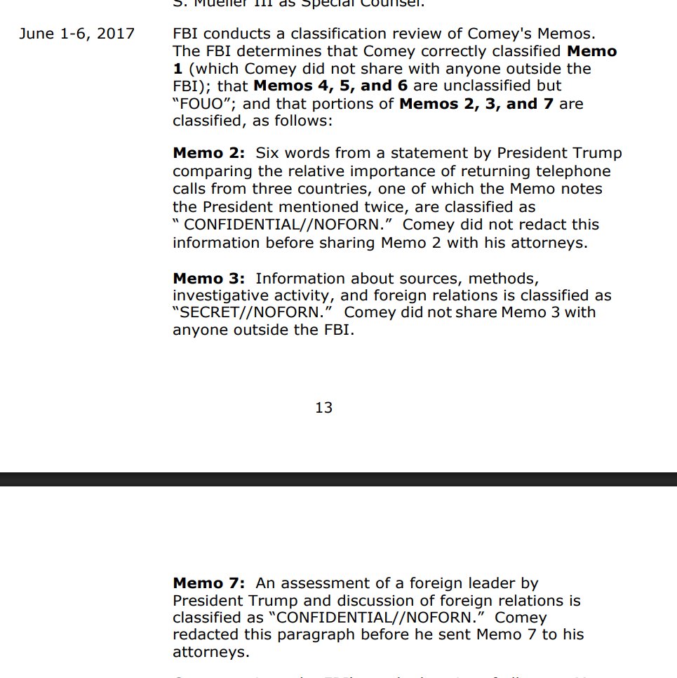 Memo 2 contained 6 words that were classified CONFIDENTIAL/NOFORN which Comey did not redact.