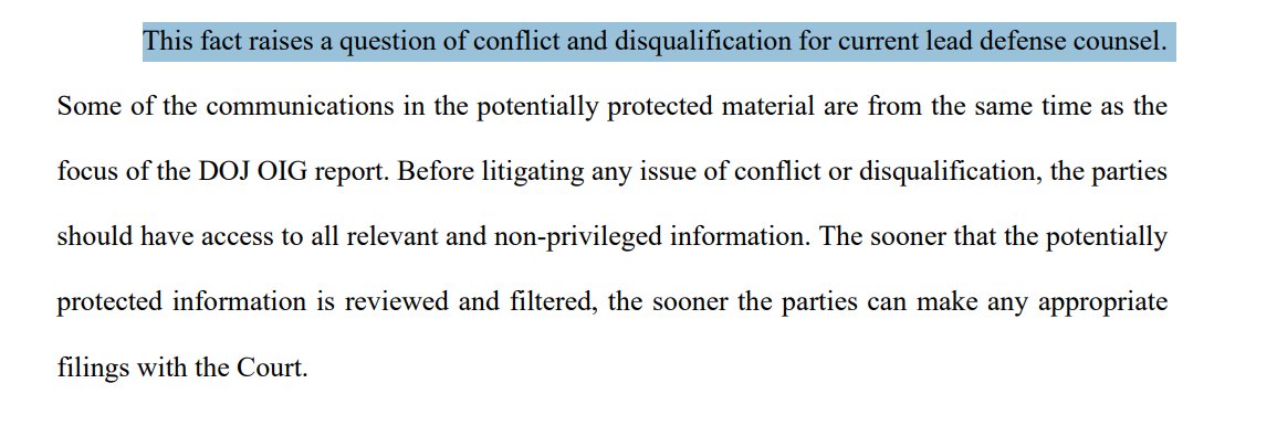 Nachmanoff also notes that DOJ has had years to address the issue it is now in a rush to resolve; the IG report as well as the Fitzgerald-Comey relationship and memo affair have been public knowledge since 2019; Fitzgerald didn't suddenly become Comey's defense counsel—he's been that since Sept 25