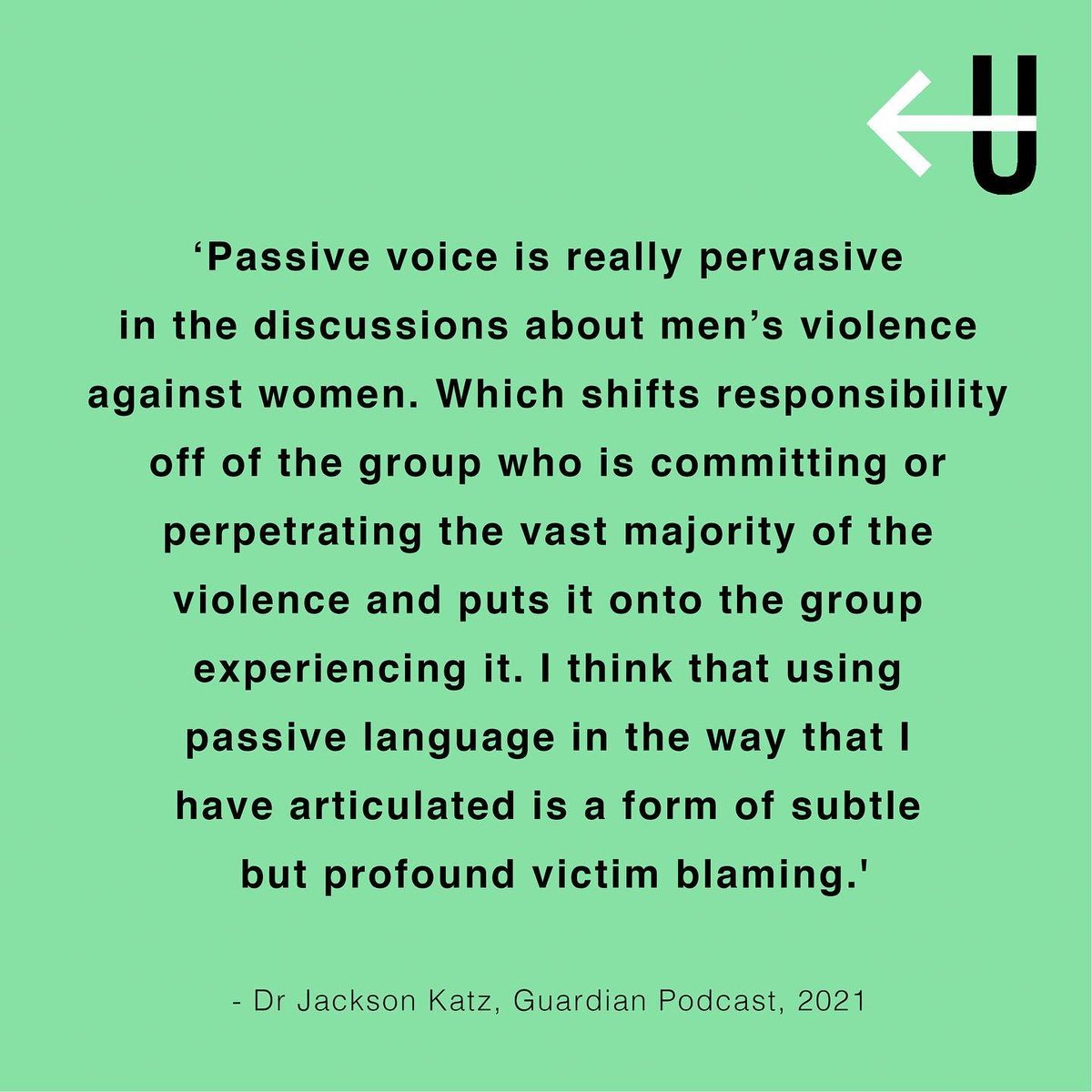 "...using active language is itself a political act. It puts the onus of responsibility on those who engage in abusive behaviors. Asking the question: “How many men raped women?” rather than “How many women were raped?” is much more likely to lead to actions that prevent rape..."