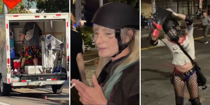 "Antifa unmasked: I've investigated the armed Portland Trantifa militant who goes to the riots outside ICE and dresses like a little girl around the city. He is a 46-year-old man from Houston, Texas named Michael Patrick Backes.