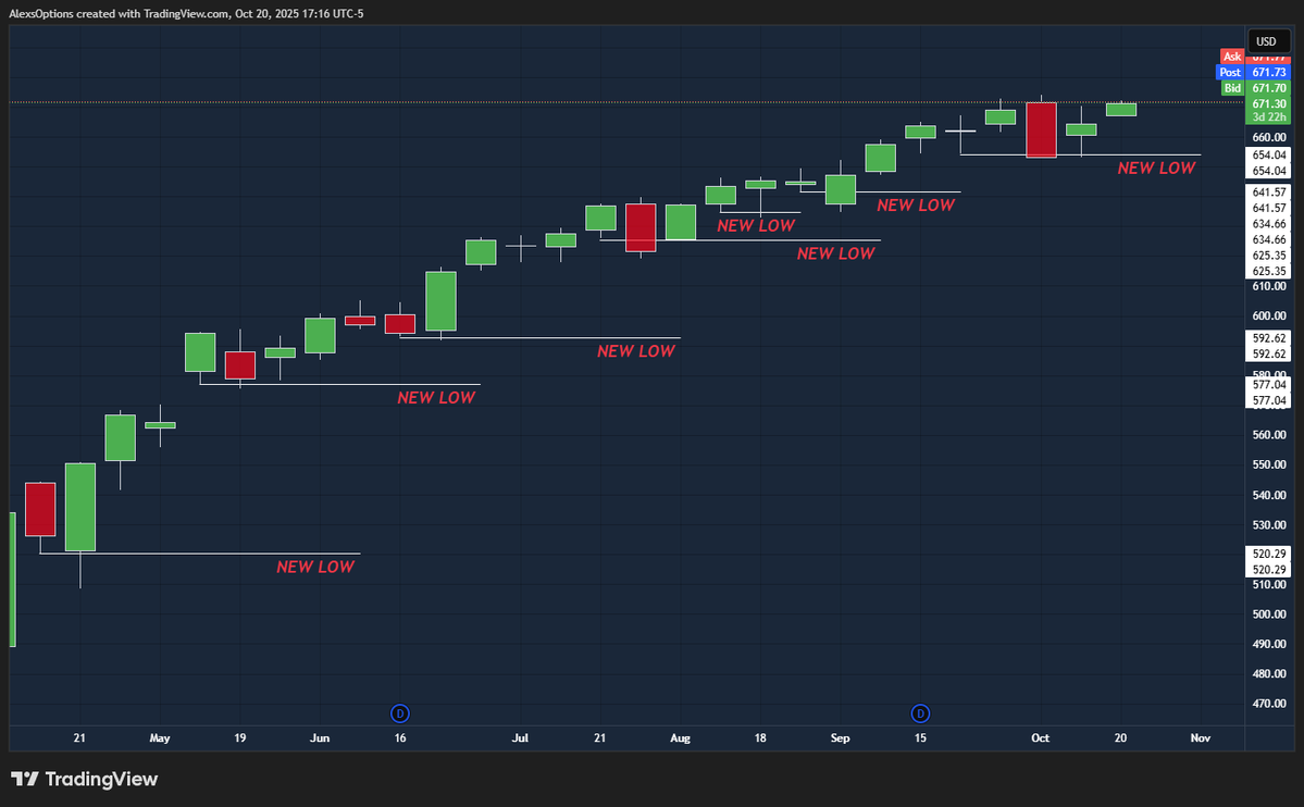 This is because when you make new highs it tells you of a buyer that took the offer and was willing to pay up!