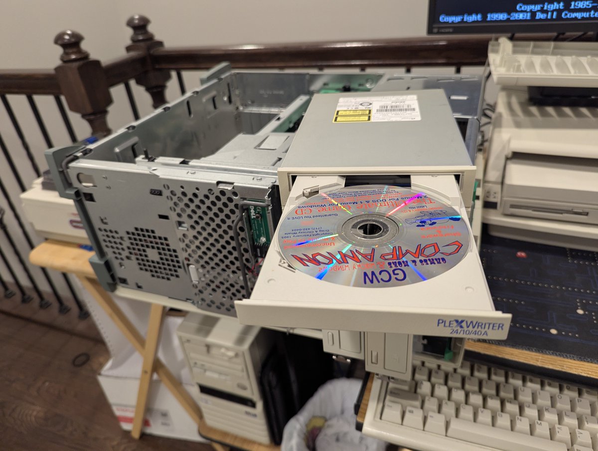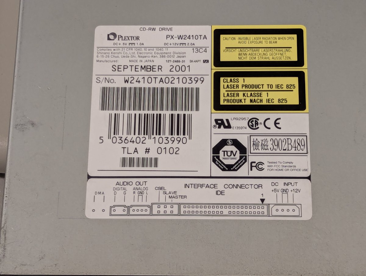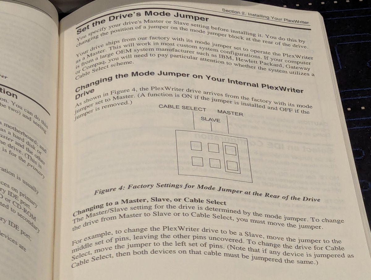 Alright, let's check out that Plextor optical. It's a beautiful PlexWriter 24/10/40A, and I even have the manuals for it! We'll use the GCW Companion disc I have to test it!