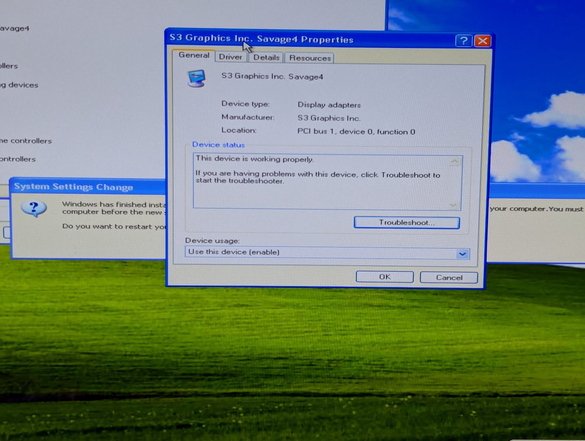 So, first we'll test the Diamond AGP card. It's an OEM card, and after some searching, I THINK it is a Diamond Speedstar A200, with the S3 Savage4 PRO chipset. In it goes! And I lied, I used Windows XP to test this one, I forgot 😂. Anyway, it checks out ✅