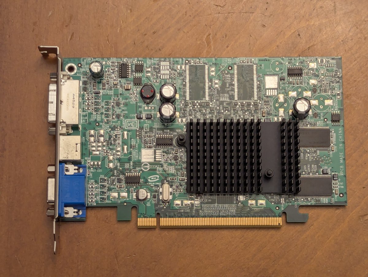 Next, we have this card here, I think it's an Nvidia card. Foolishly, I thought it was PCI, but it's PCI Express. I have no use for this! It'll go on the free table at the next event I attend, whatever that is!
