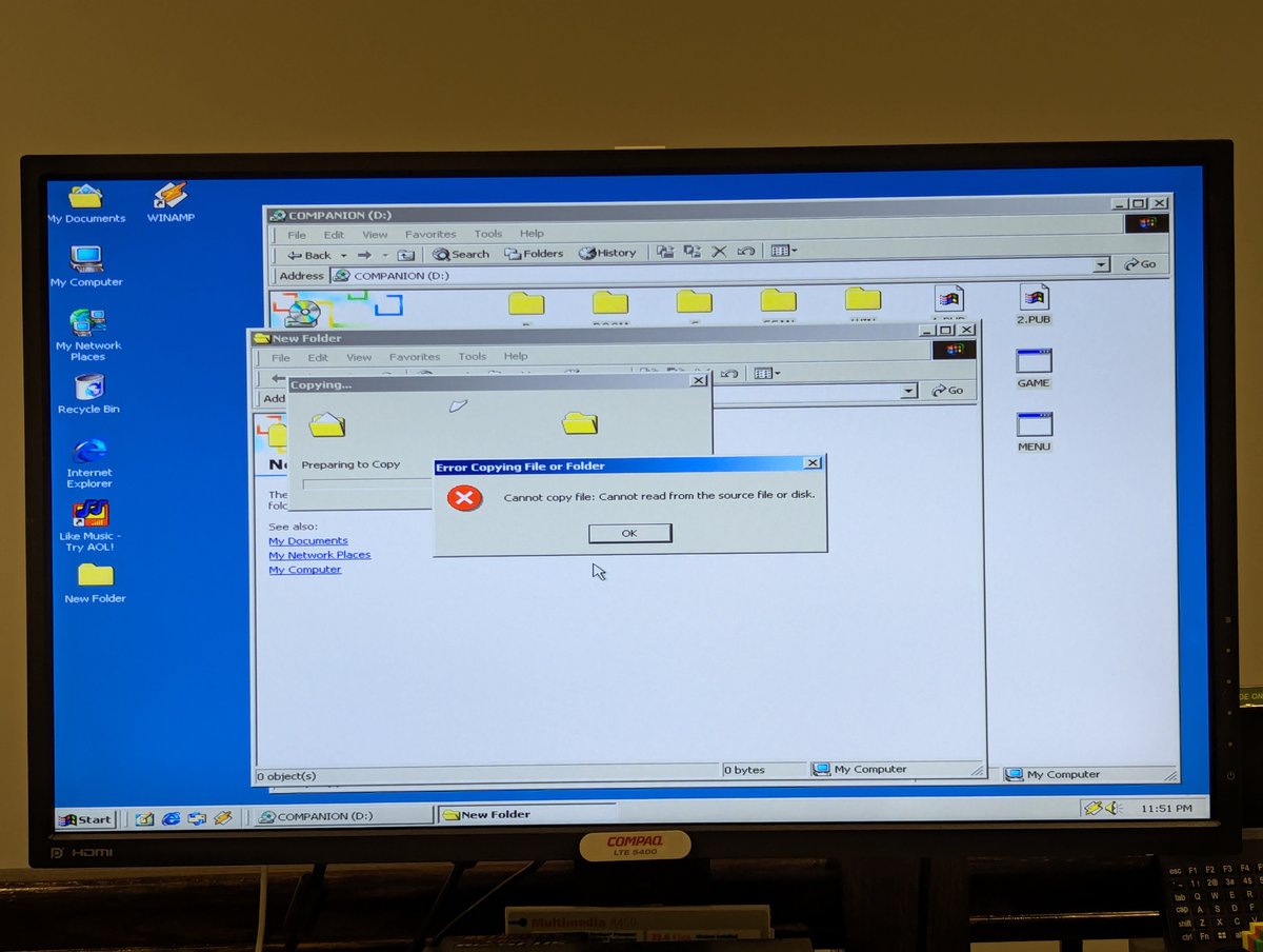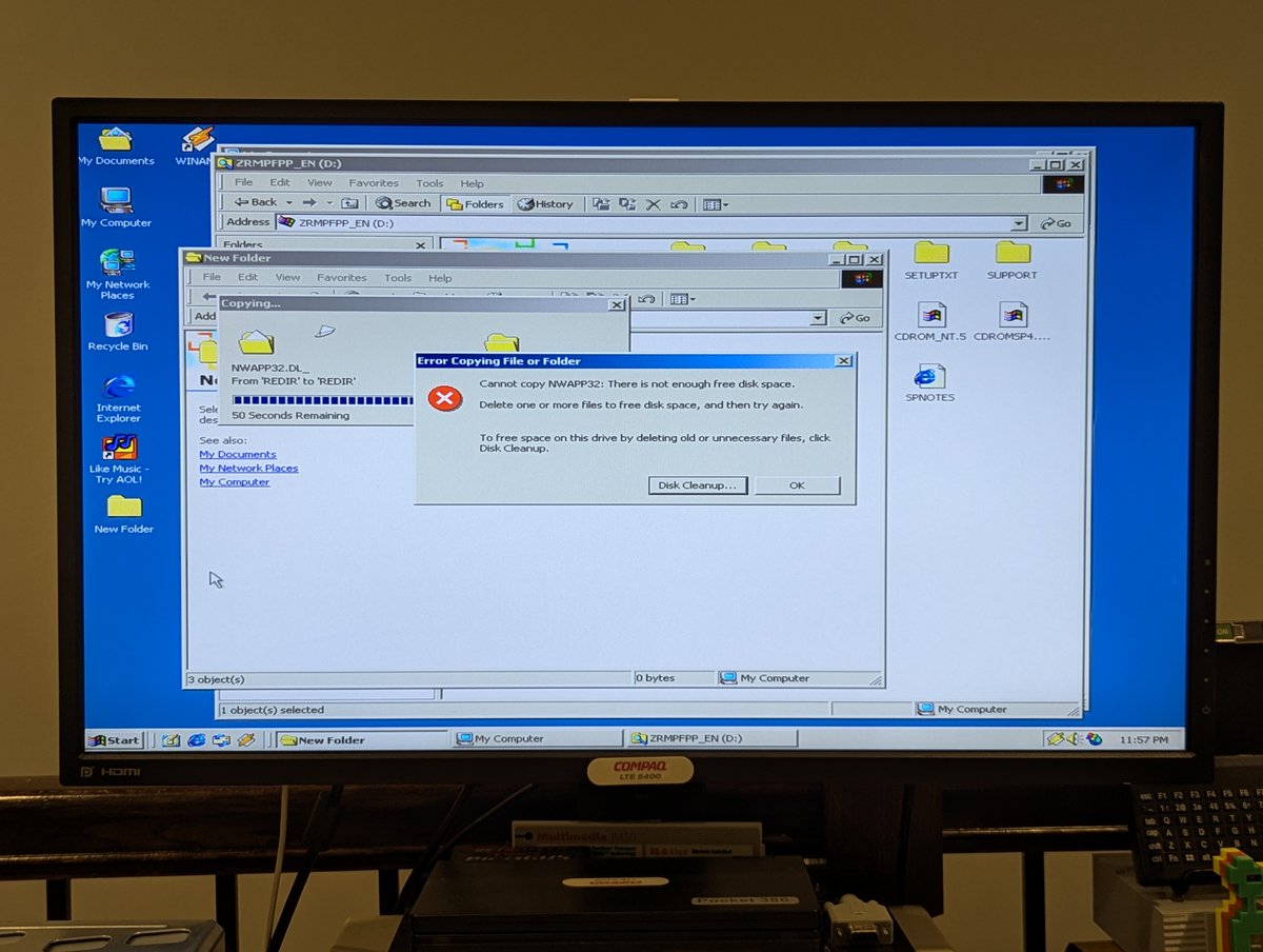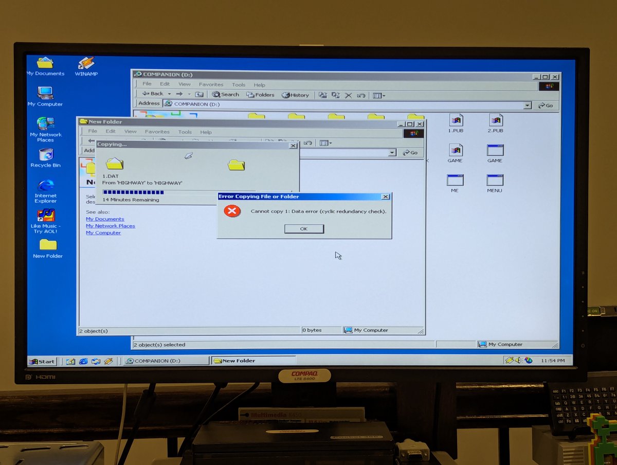 Okay, things are looking better! Files are copying, but looks like we ran out of disk space 😂. I can live with that. And maybe this Dell is just weird with the whole master/slave jumper thing. We might try this on another PC later... then again, maybe not 🤣.