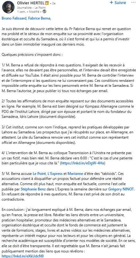 Je vous laisse prendre connaissance de sa plaidoirie de 4 pages et de la réponse croustillante du journaliste d'investigation @OlivierHertel :🔽 linkedin.com/posts/olivierh…