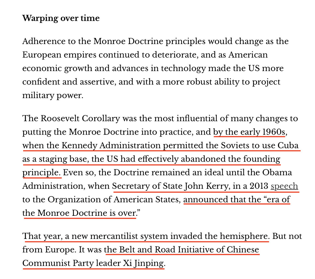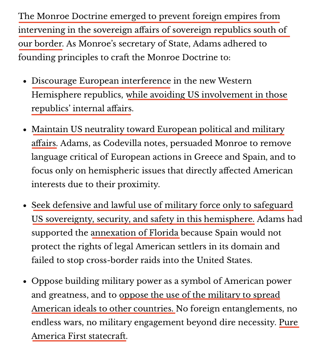 🧵 It's important for President Trump to restore the two-century-old Monroe Doctrine, which the neocons abandoned & the Left renounced.