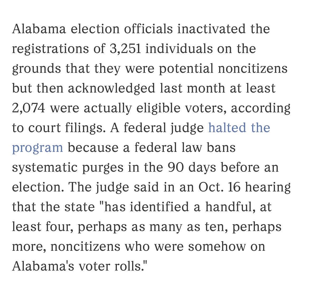 For example, last year Alabama claimed to have found 3,251 noncitizens on the voting roll — which was false!