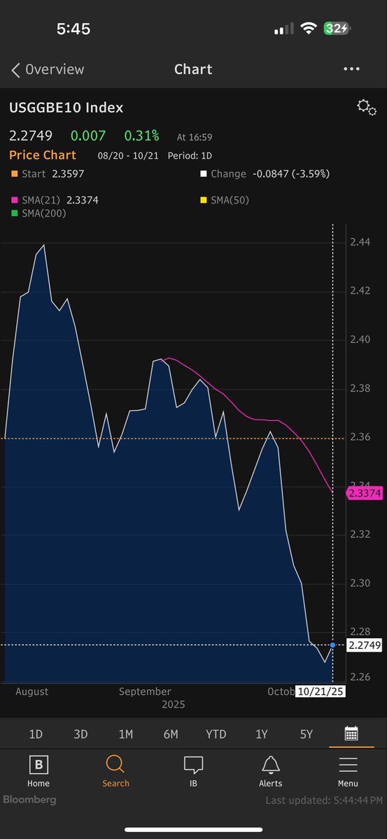 Inflation b/e have fallen modestly totaling 9 bp of which some is inflation expectations and some is risk premium. Fair to say inflation expectations haven't moved much