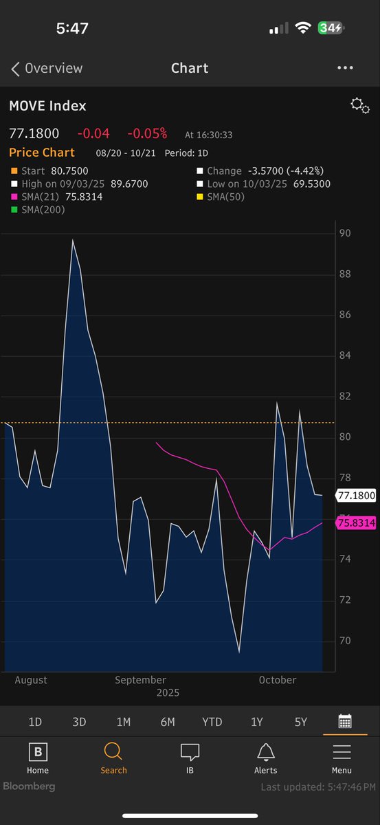 Risk of holding bonds as a driver of risk premium can be proxied with measures of price volatility. There are more sophisticated ones than Move but they are telling the same story. Bond risk is basically unchanged and already low since Jackson Hole as bond risk has cratered
