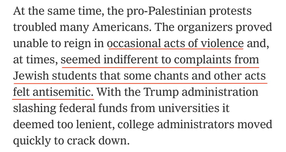 4/ LEFT: NYT says violence was only “occasional” and that chants merely “felt antisemitic.”