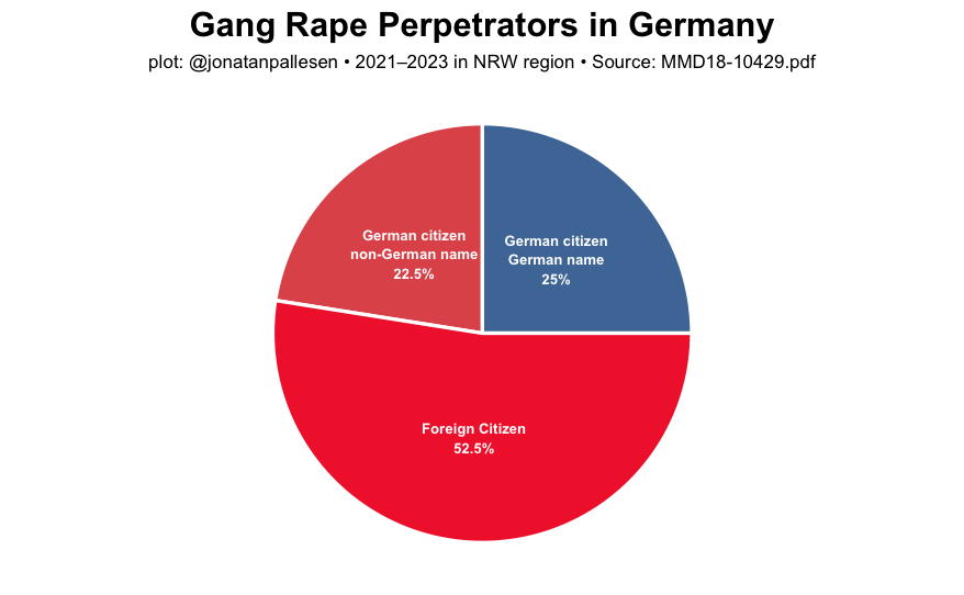 Women's risk of being gang-raped in Europe would be reduced to just ~25% of the current level if there had been no Muslim / African mass immigration.