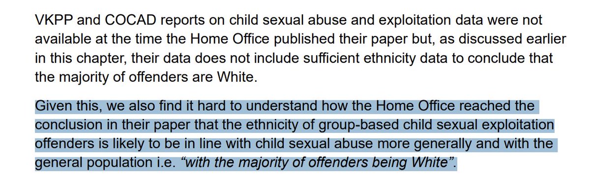 The report criticizes the Home Office (which claimed the majority of offenders were White), saying it was hard to understand how the Home Office reached their conclusions.