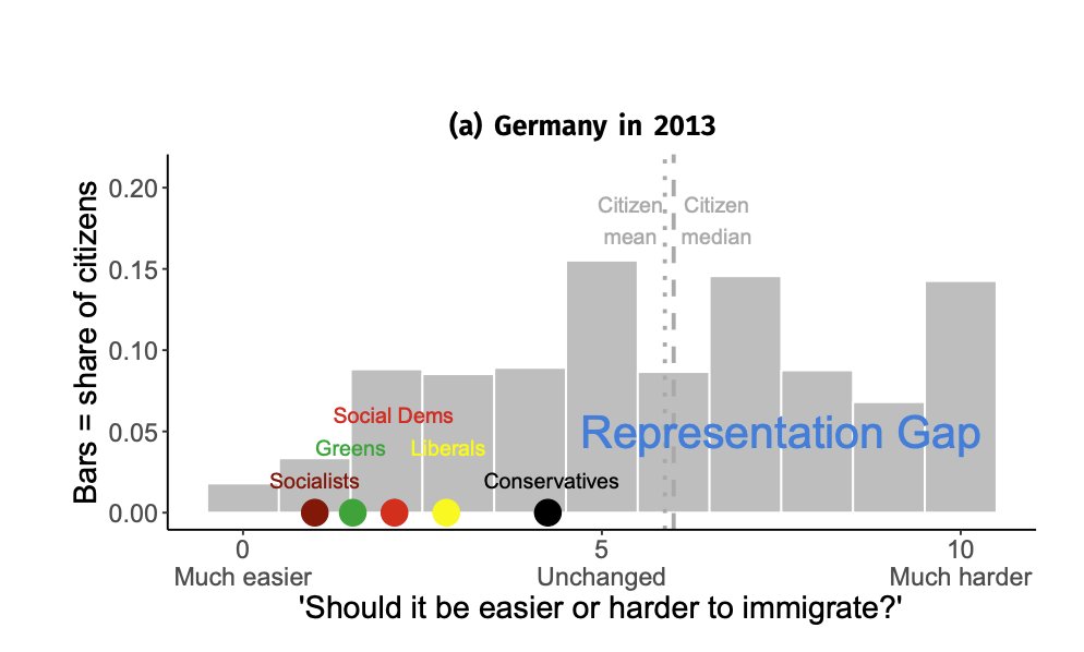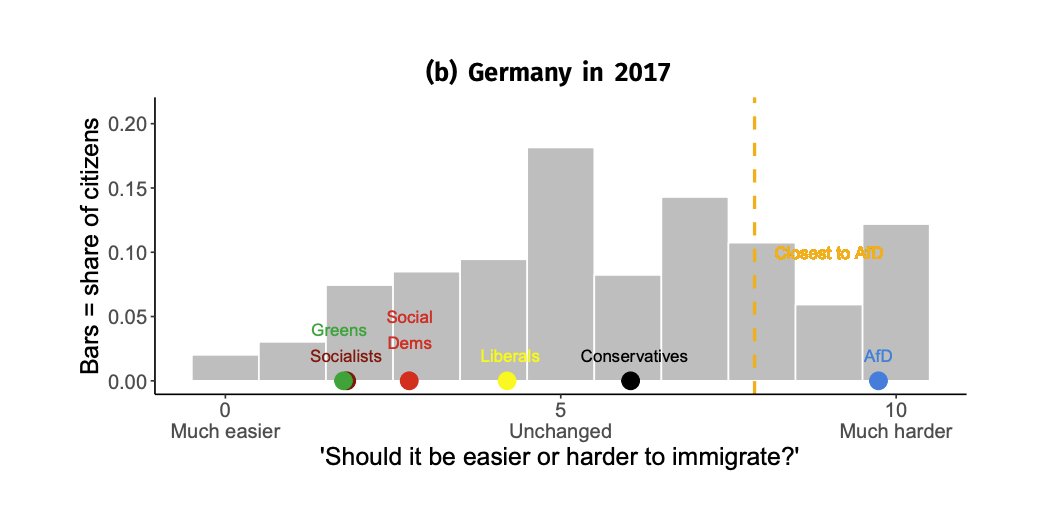 AfD is the party that is closest to the median voter on the topic of immigration, and yet in the press they are denounced as extremists, and there are attempts to declare the party illegal and ban it.
