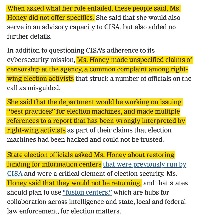 Honey echoed debunked conspiracy theories, offered vague, unsettling plans for the federal role in elections & didn't give details on her DHS job.