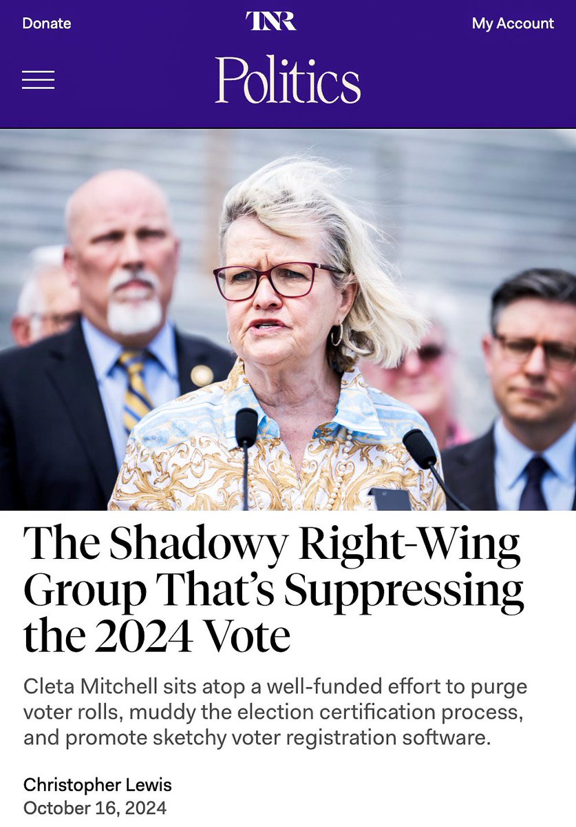Cleta Mitchell, (EIN founder) Trump's lawyer who joined his call to pressure Georgia's Secretary of State to find votes, develop policies that informed Trump’s March executive order and the SAVE Act.