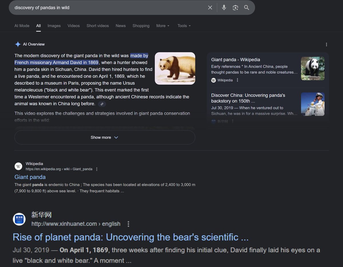 7. The first big question to ask is whether that video was even correct in suggesting pandas were first discovered in the 1920's.