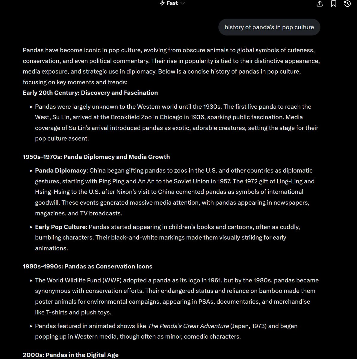 9. A basic Grok history notes the first appearance of pandas in "pop culture" is in the 1930's in America.... that's not conclusive, but it will help clarify this next data point which is!