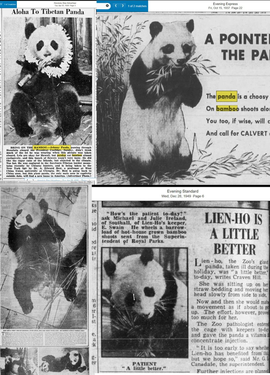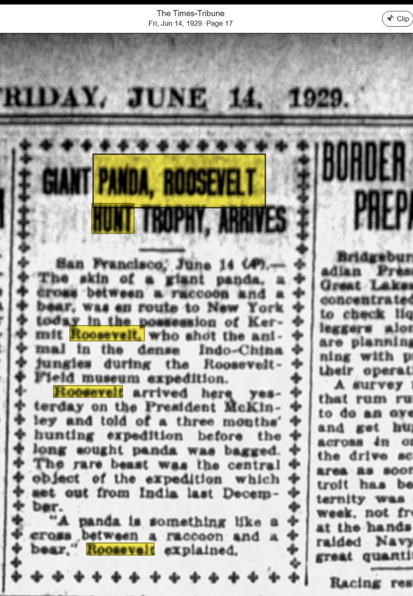 10. A basic newspaper search for Pandas traces them back to 1929! Hunted by the SON OF THE FORMER PRESIDENT OF THE UNITED STATES.