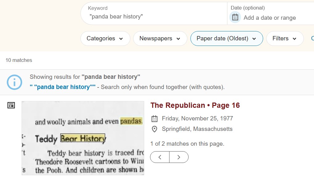 In fact look up "Panda Bear History" and Teddy Bear History comes up with Theodore Roosevelt.