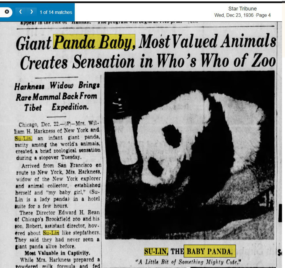 12/17/1936 First Chinese Panda in America Su-Lin Cuts First Tooth "A Little Bit of Something Mighty Cute"