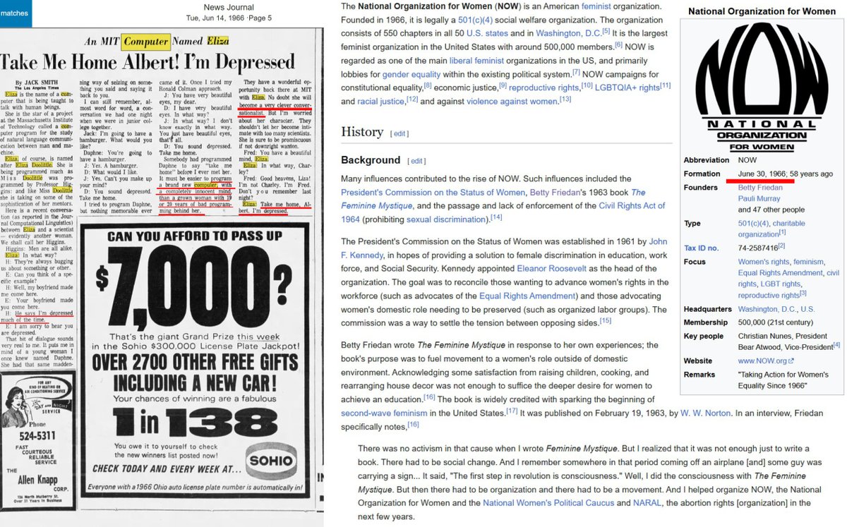 06/13/1966 Eliza AI Programming First Reported Across 3 Days