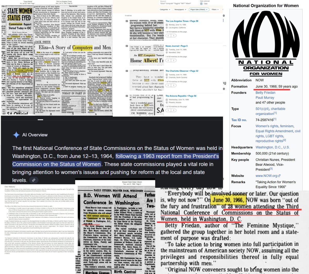2. 06/30/1966 NOW: National Organization For Women Founded on 3rd Day of 3rd National Conference on Status of Women-Largest Feminist Organization