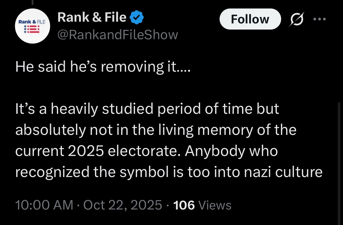 The thing I’m really curious about is how we’re supposed to carry on as the pro-Palestine movement, wrongfully accused of antisemitism for years now, with the Nazi tattoo guy in a leadership position.