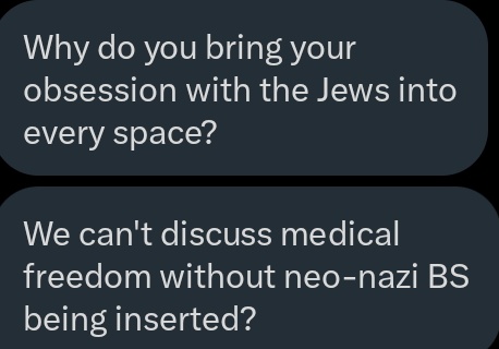 @RichardEntuboca after posting this image because i like collecting propaganda someone unfollowed me. some dm i dont want to open about we can't talk about medical freedom without neo nazi blah blah blah. if you defend the united states they'll call you a nazi anyways. clearly covid was a ✡️ op.