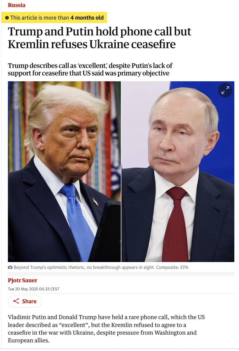 Et de fait : tandis que Zelensky s’est dit prêt à se joindre aux discussions, la partie russe a déjà fait savoir qu’elle ne comptait rien céder. Trump se plie en quatre pour les aider, pendant que les Russes se moquent ouvertement de lui.
