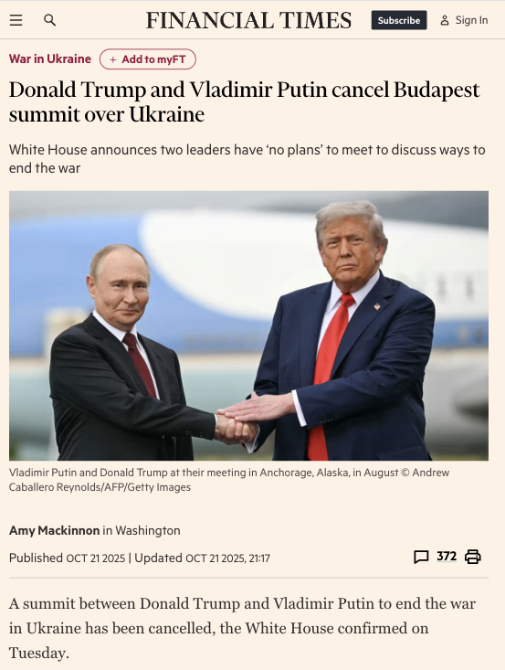 En conclusion, rien de bon n’est à attendre de Budapest. Si Trump voulait vraiment faire plier Poutine, il aurait pu le faire par téléphone — avant même de (re-)devenir président, comme promis à plus de 50 reprises.