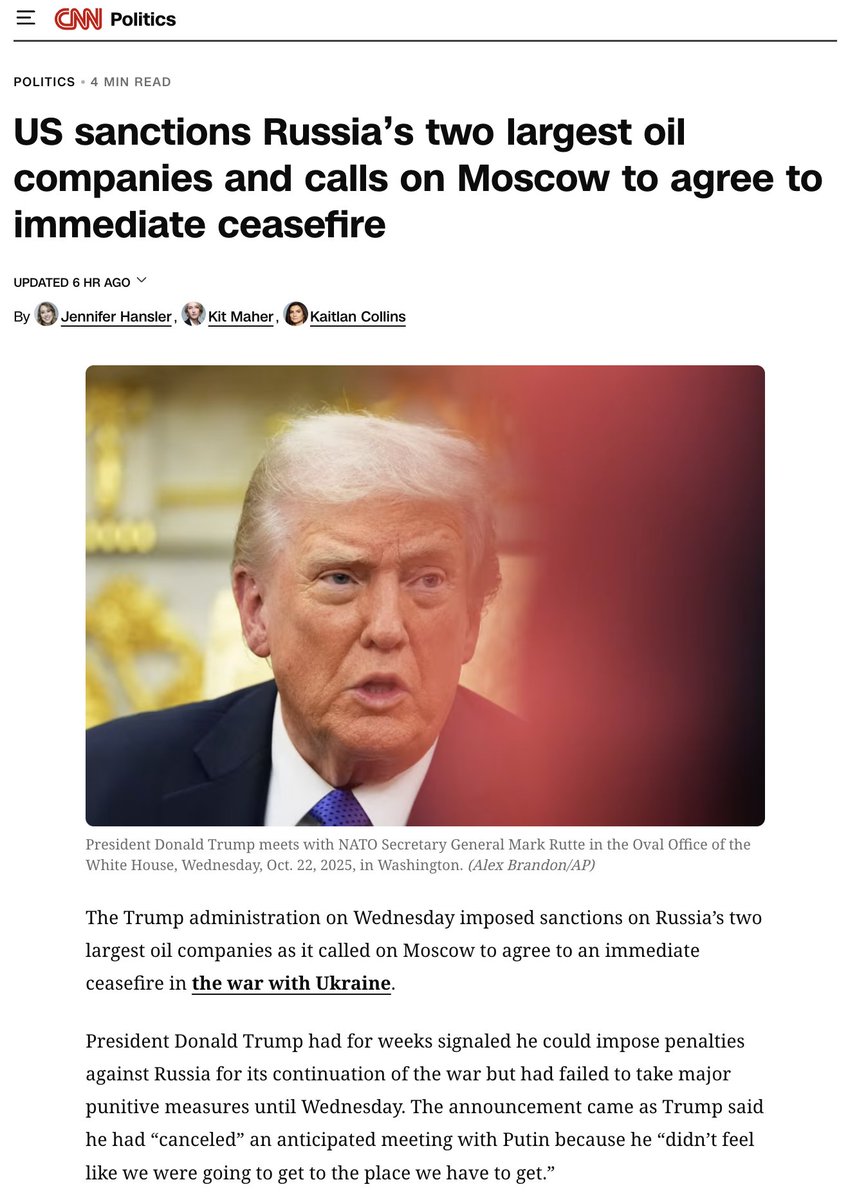 Dans le dernier épisode, Trump avait promis des missiles Tomahawk, mais a décidé d’en parler d’abord avec l’envahisseur. Après un appel téléphonique de 2 heures, Trump a annoncé que l’Ukraine n’en recevrait finalement pas, car — surprise ! — cela ne plairait pas à Poutine.