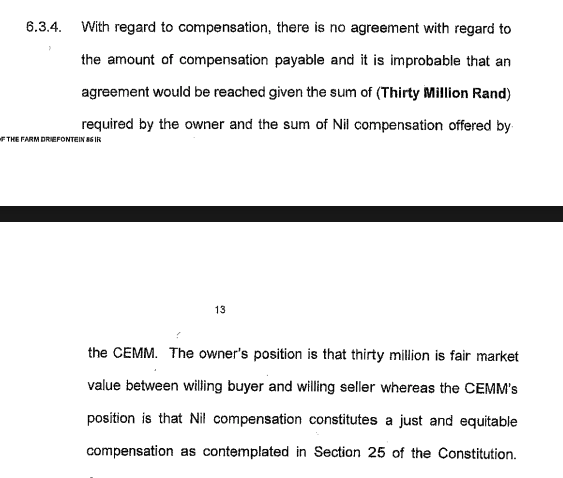 In 2019, Portion 406 of the Farm Driefontein was expropriated on the grounds of being "in the public interest."