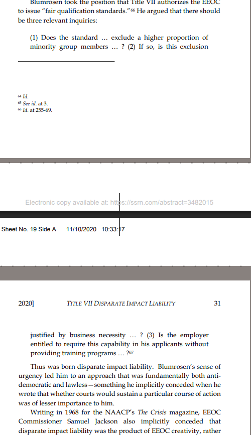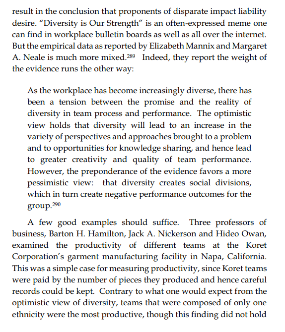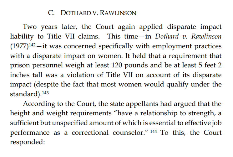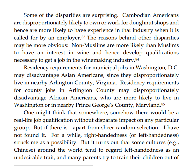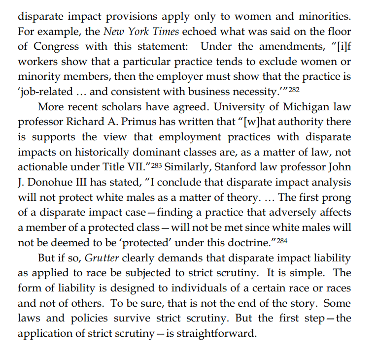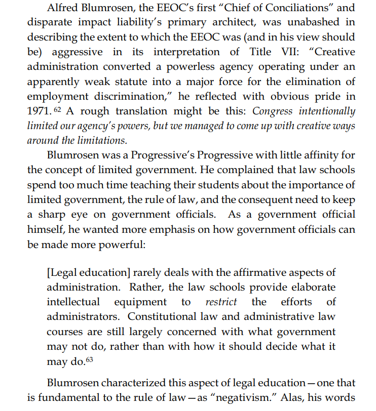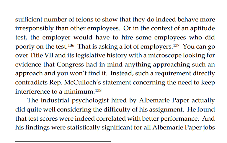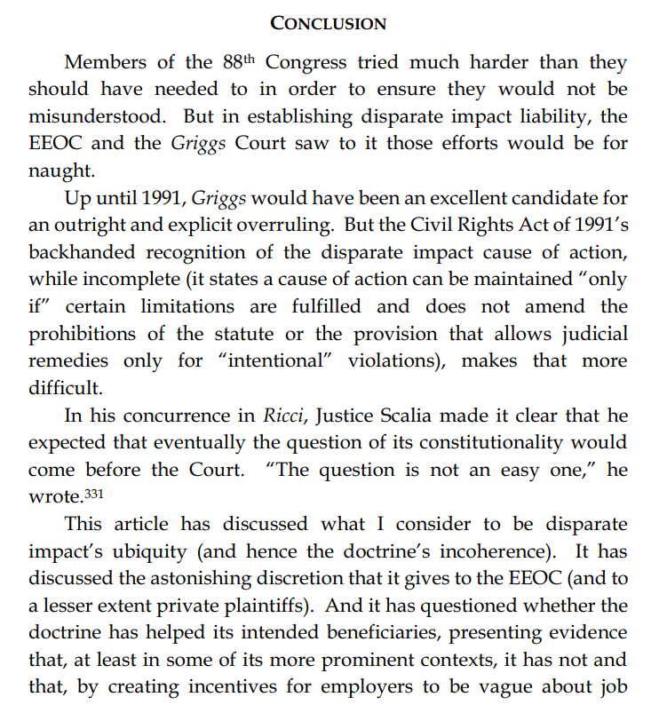 Thread with excerpts from Gail Heriot's "Title VII Disparate Impact Liability Makes Almost Everything Presumptively Illegal". The argument is very simple: everything has disparate impact; therefore disparate impact doctrine gives the EEOC effectively unlimited arbitrary power.