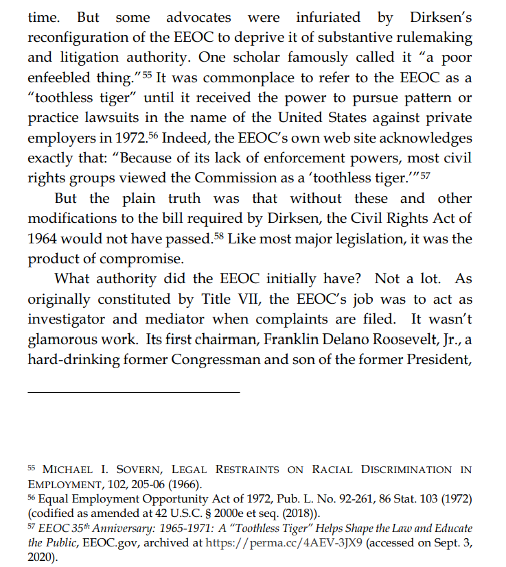The EEOC gained the ability to go after private employers in 1972. Another thing to blame Nixon (who gets far too much credit on the e-Right) for.
