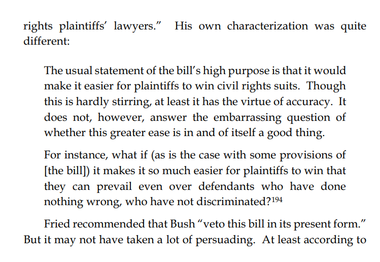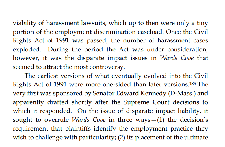 The 1991 CRA more generally made it much easier for plaintiffs to win Civil Rights cases. Not just harassment ones. Critics called it a quota bill, predicting (correctly) it would lead to employment quotas.
