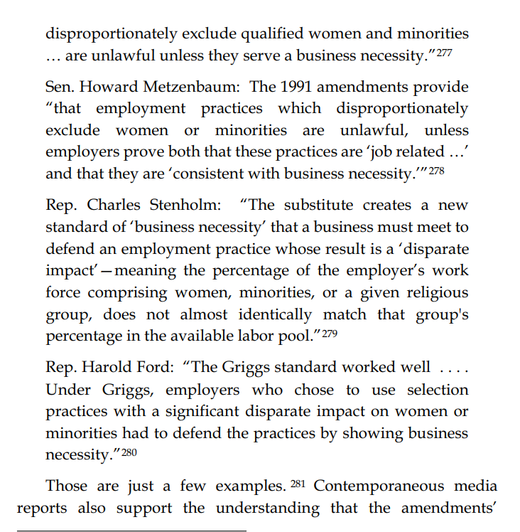 This makes every single employment decision made subject to a potential EEOC lawsuit. This allows the EEOC to act as a "super-legislature," picking which employment practices are legal and favored (eg requiring a diploma) vs illegal (eg written or physical tests).
