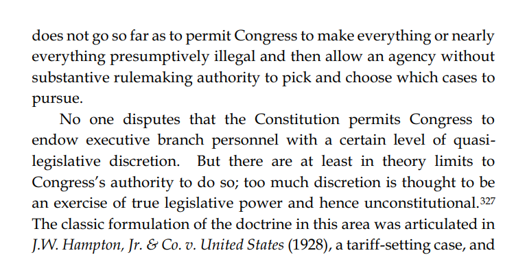 Arguably, Congress has unconstitutionally delegated too much legislative authority by making everything illegal and then allowing an Executive enforcement agency to pick and choose which cases to pursue.