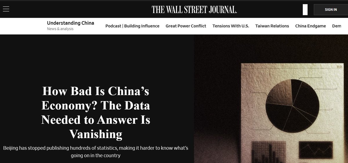 China in their own words says that none of their data is reliable, so they're forced to use proxies such as toilet sizes, electricity consumption, rail-freight volumes and new bank loans to figure out what's going on in the aggregate. Recently they stopped measuring key data.