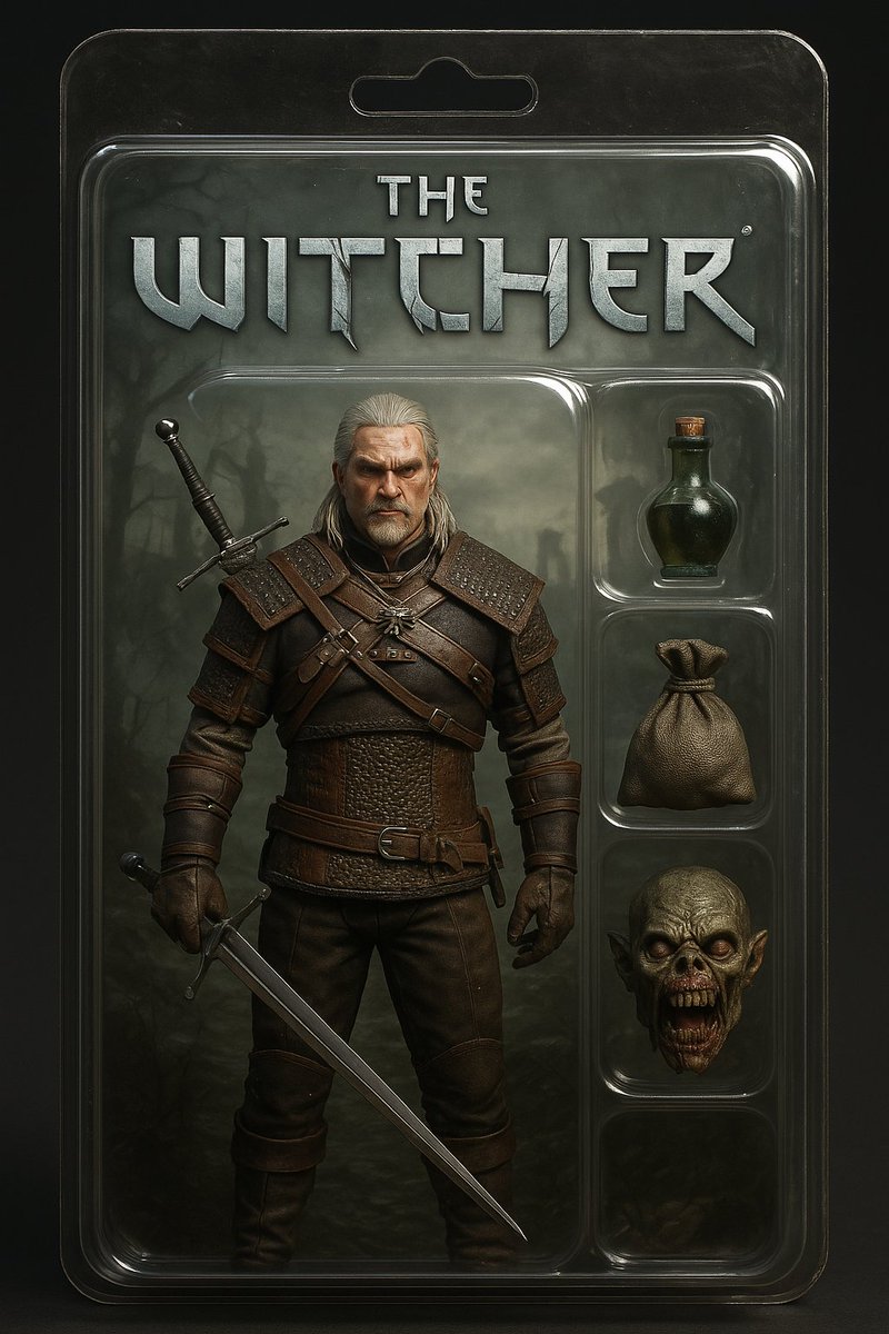 Photorealistic image of a <> action figure, packaged vertically in a premium collectible blister pack, viewed from the front. The figure stands on the left, <>, inspired by <>. On the right, three accessories are neatly arranged in separate molded compartments: <>, <>, and <>. The matte cardboard backing features <>, and the title "character name or theme" in a <> at the top. The plastic blister pack is glossy with light reflections, and the image is illuminated with <> that enhances the <>. High-resolution, hyper-detailed, cinematic product photography.
