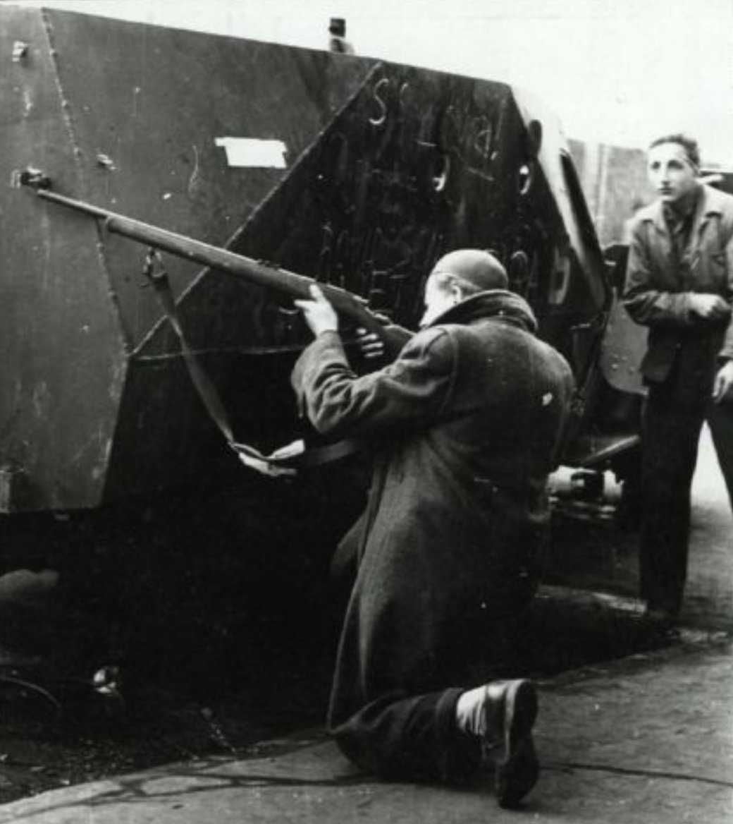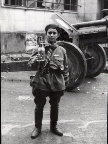 7/ As daylight breaks over Budapest, clashes break out between Soviet forces and revolutionaries, with both men and women taking up arms. There are casualties on both sides. Tanks are set on fire and Hungarians are killed and injured by Soviet machine-gun and tank fire.
