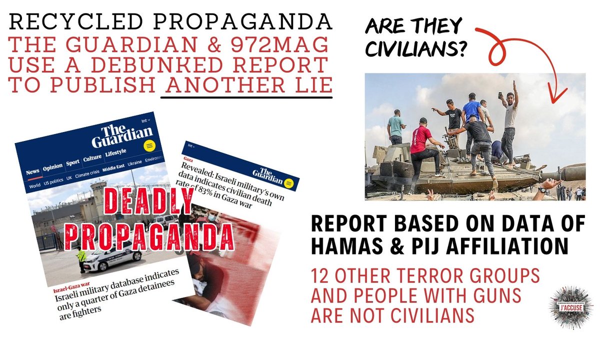 🧵Once again, The Guardian & +972Mag recycle Hamas/PIJ lists to smear Israel—first to claim 83% of Gaza dead were “civilians,” now that 75% of arrests are “innocents.” Armed fighters in disguise aren’t civilians. This isn’t journalism but coordinated propaganda.