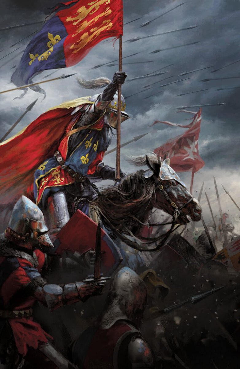 In AD 1413 Henry V was crowned king upon the death of his father and reasserted the claim to the throne of France that stemmed from his โ€˜most famed of famous ancestorsโ€™ Edward III.Image