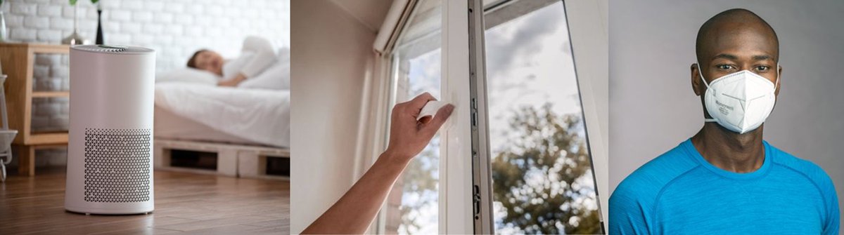 The most common physical interventions being air filtration, ventilation and masking. Image