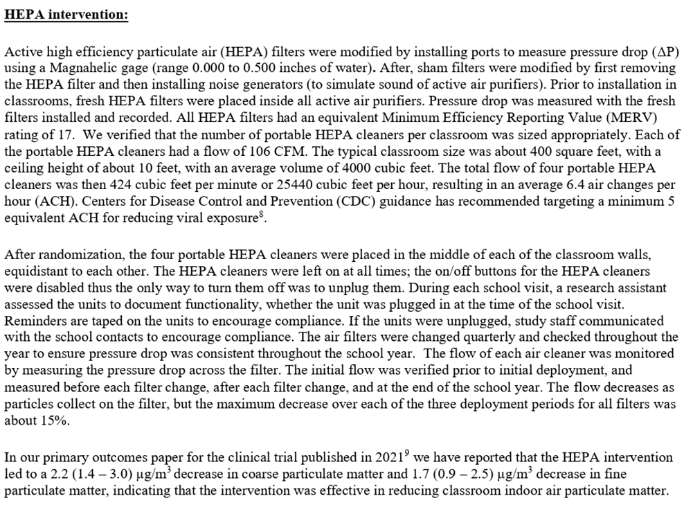 For example, in the future, the likelihood of a teacher in a treatment group of keeping a portable HEPA filter on in their classroom will be affected by them being told that “they don’t work”. This creates a self-fulfilling cycle. Image