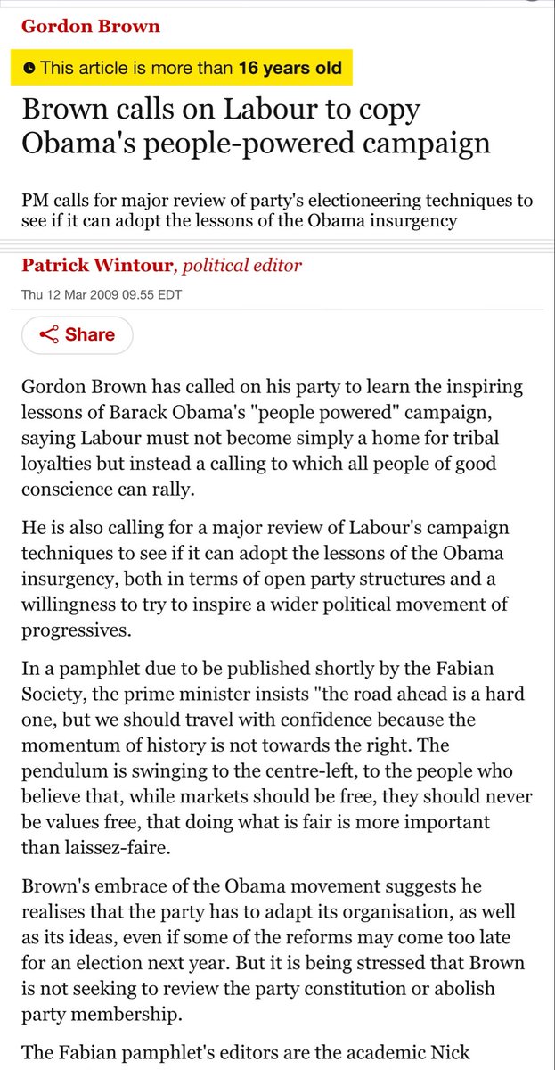 ♦️2009 - Fabian Gordon Brown calls on Labour to copy Obama's people-powered campaign