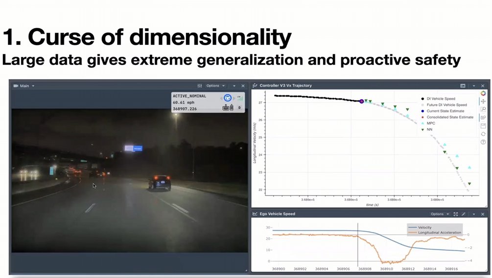Tesla's advantage: access to the "Niagara Falls of data" from their massive fleet. You don't want spurious correlations—you want the RIGHT correlations explaining why those 2 output tokens are correct. Data is their competitive moat. Image