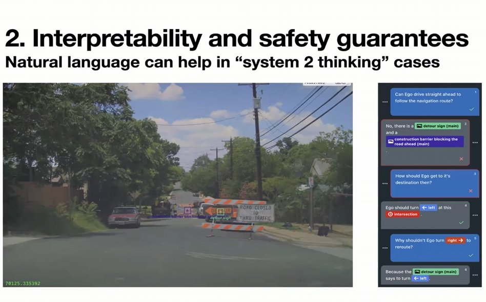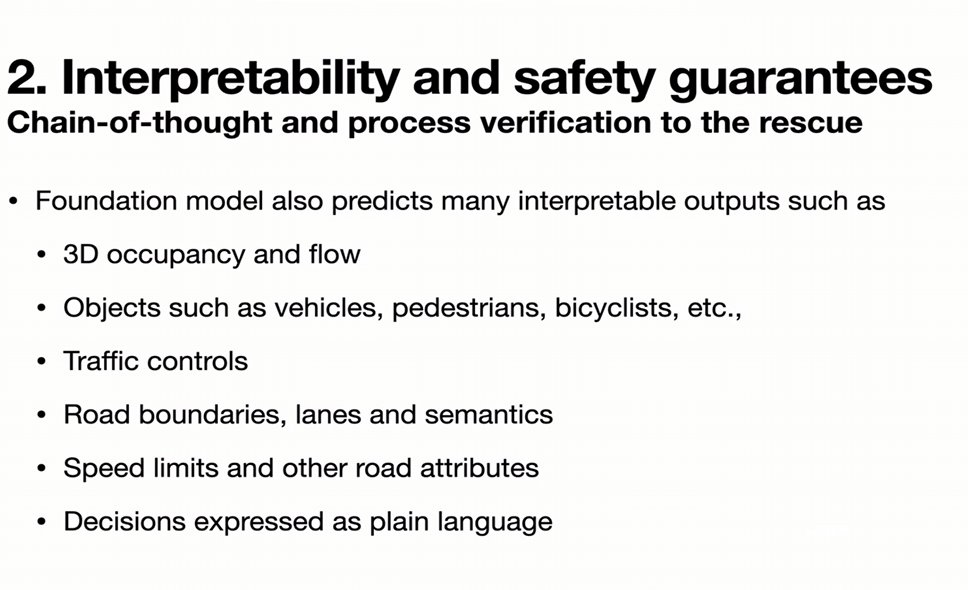 The same model can be prompted to predict 3D occupancy, objects, traffic lights, road boundaries, even plain language explanations. Just because it's end-to-end doesn't mean it's a black box. Image
