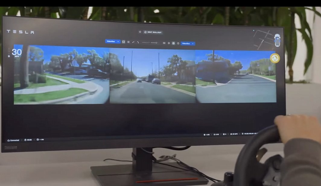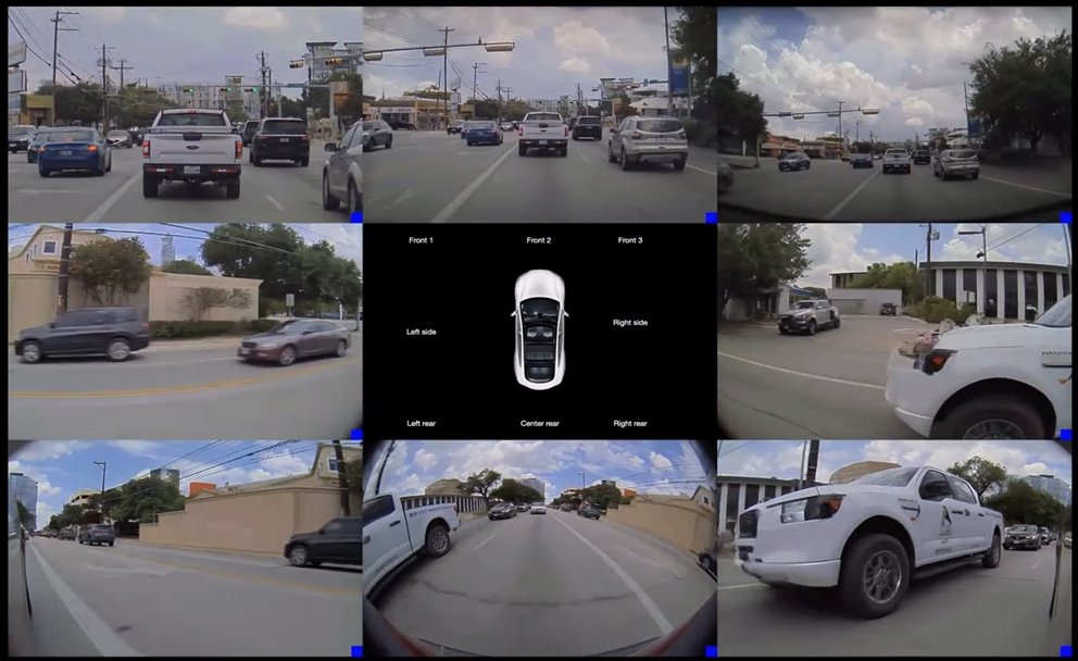 The system uses a single large end-to-end neural network. Pixels and sensor data go in → steering and acceleration come out. No explicit perception modules. Raw video streams directly to actions. This approach has been powering Tesla's FSD for years now. Image