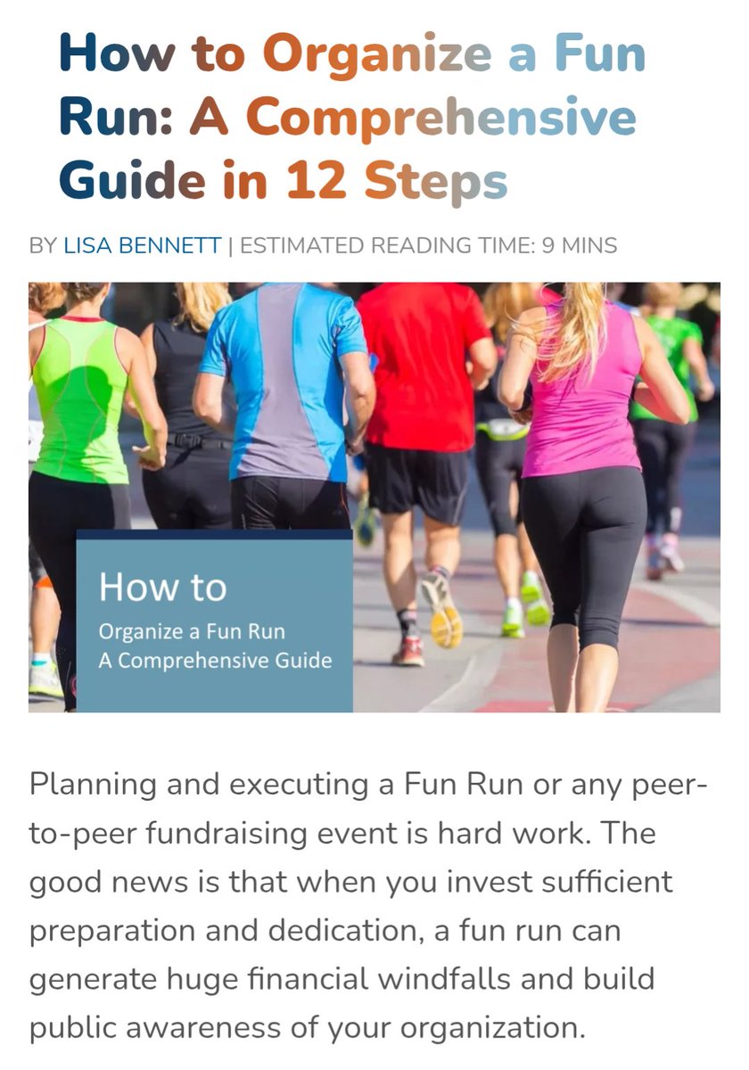 Fun runs are are great for getting ppl outdoors and engaged. They're also one of the most weather-vulnerable fundraising/outreach options, so keep that in mind. 5/